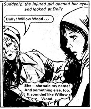 Dolly gets a clue to her past when she helps an injured girl during a storm, the girl seems to recognise her when she says “Dolly! Willow Wood..”. Dolly doesn’t get a chance to see the girl again to question her more, as the police move the Grimbys on. This also raises doubts about the Grimby’s honesty regarding Dolly’s past. Gus Grimby tells Dolly they had to move on because the police were sent after the girl recognising her, but Dolly had overheard the actual conversation, that the police is moving them on because the squire doesn’t want fairs on his land so she knows he is lying.