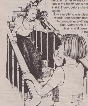 Sue is looking for a suitable mask to win first prize again at a Halloween costume party. When she and her mother have to go and look after their sick (but rude) Uncle Henry, she steals a key to his locked room. Sue is unnerved to find it filled with all sorts of creepy occult paraphernalia, but is thrilled to find a super-creepy mask, which is just what she is looking for. She dismisses the note attached to the mask, which says it was found in Tibet on a dying man and only Uncle Henry knows its “terrible secret”. The mask wins Sue first prize hands down. But when Sue tries to remove it, she finds she can’t; each time she tries, there is another, and another, and another. Recalling Uncle Henry’s note, she calls his house for help, only to learn he has died.